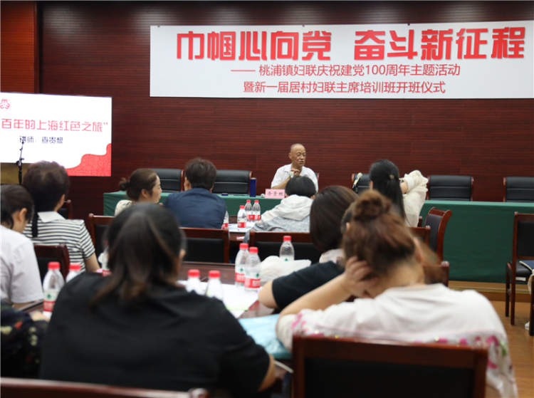 为庆祝中国共产党成立100周年,7月2日,普陀区桃浦镇举行“巾帼心向党 奋斗新征程”,镇妇联庆祝建党100周年主题活动暨新一届居村妇联主席任职培训,为桃浦镇妇女儿童事业谋新篇、开新局。