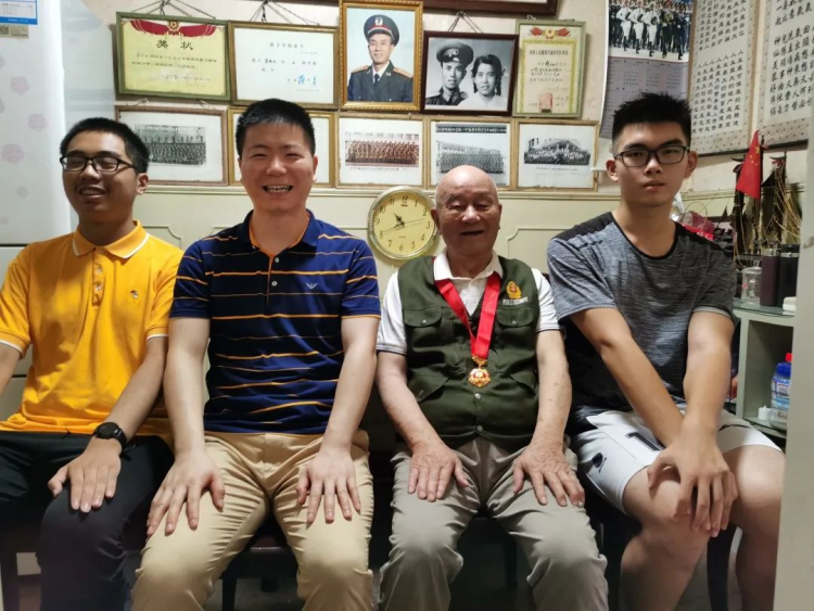 当孙辈带着同学们来看望爷爷时,爷爷高兴地在胸前挂上了党龄50年纪念章,还和同学们一起合影,他笑着寄语孩子们:“你们要传承红色基因,做个奋发有为的建设者,未来国家的强大,就靠你们了!“