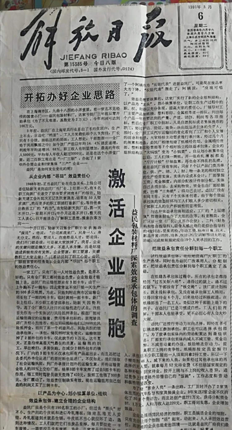 后来,他被派到连年亏损的益民包装材料厂担任厂长,他绞尽脑汁从企业内部寻回效益责任心,以产品为中心,组织效益承包体,建立合理的企业结构,一举将该企业扭亏为盈,让企业走出了困境,实现了企业和职工双赢。