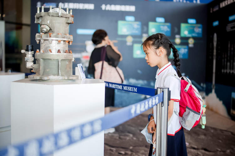 此次“航海生活节”集中向公众展示我国在深海探索、深空探月、极地科考等尖端科技的前沿成果。中国航海博物馆一层亲水平台主会场,已全新布置成探月、探海、探极地三大互动展区,场景模拟成月表、海底、冰川,让公众与10多件“大国重器”实物展品或展示模型近距离接触。