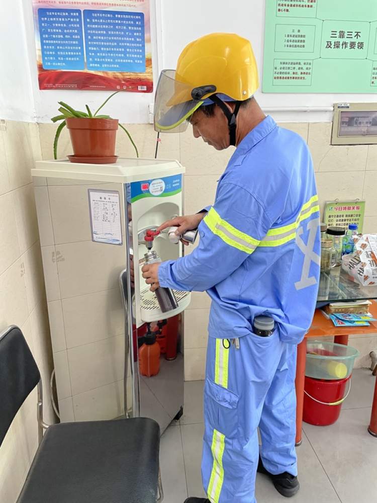 环卫工王师傅说:“我们到这里凉快凉快。这里有防暑饮品,还有劳防用品,急需用的都有了。” 还有两名协管师傅也来到了“爱心接力站”,插上手机充电器,把午餐往微波炉里一放,急匆匆来到水龙头边洗了一把脸。