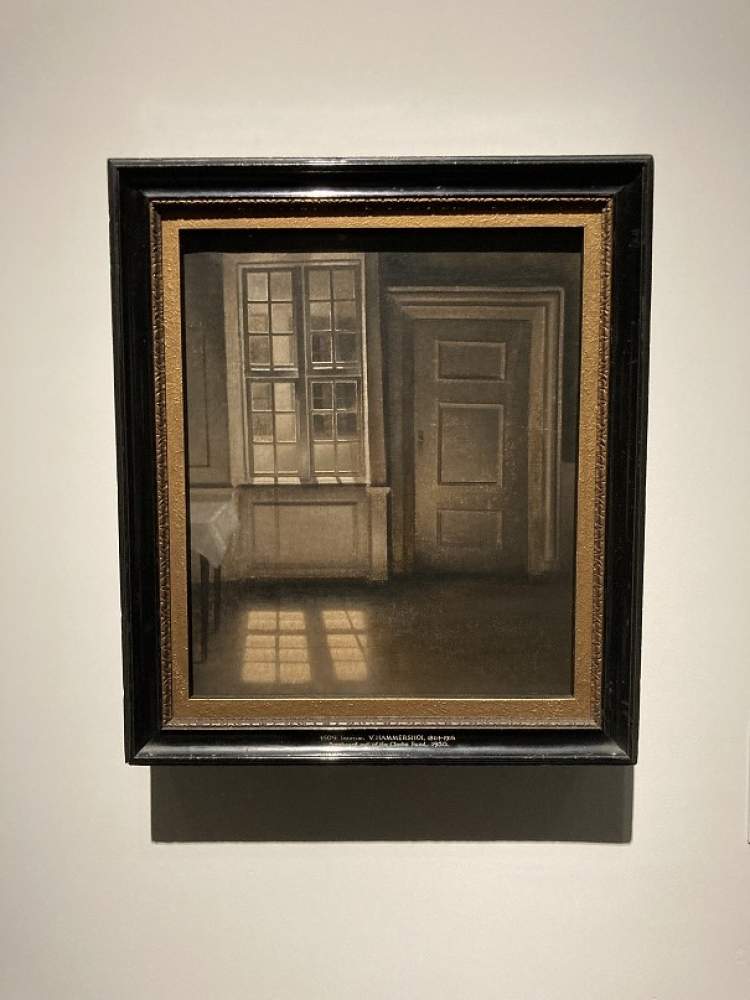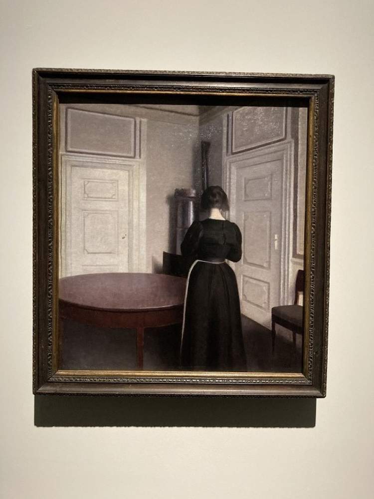 有意思的是,同一个展室内,还展出了哈默肖专门画他妻子的作品《室内》,画的却是一个背影。在美术史上,丹麦画家哈默肖是一个“神经衰弱画家”,他的艺术风格“安静而孤僻”,通过这两幅画,我们的确是get到了。