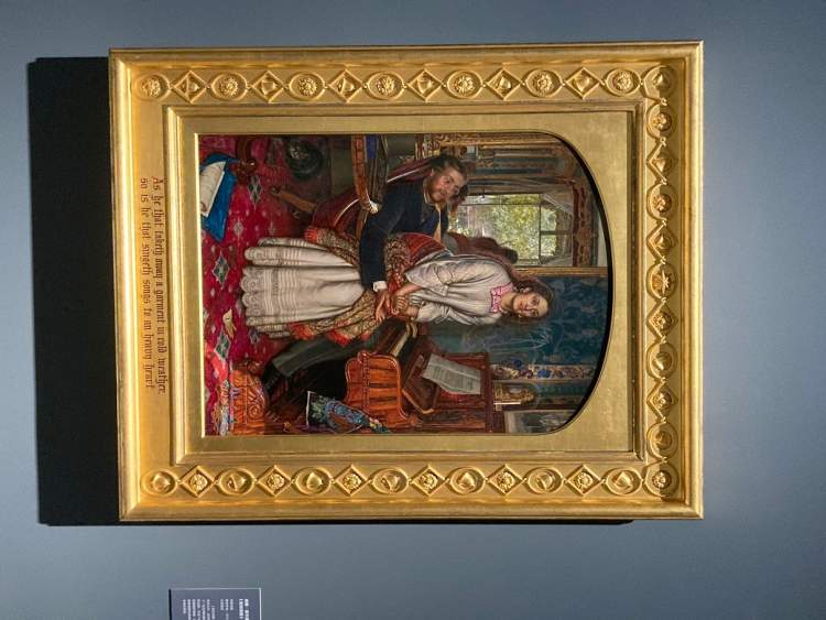 拉斐尔前派的作品此次也占据了一定比例,这些作品直接从生活中取材,尤其注意捕捉光的效果,画作细节充沛、色彩浓郁。本次来沪的展品多描绘家庭室内具有戏剧性的场景,观赏性很强。