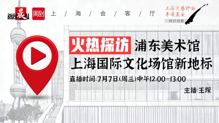 对于浦东美术馆的最新情况,本报在正式开馆之前也进行了先期报道(报道详见这里:7月8日正式开放的浦东美术馆有哪些亮点?请跟我来)。7月7日(周三)中午,上海会客厅节目将走进浦东美术馆进行一番探访,届时,本报文艺部记者王琛将担任主播并做介绍。欢迎对浦东美术馆感兴趣的市民朋友关注这场直播活动。