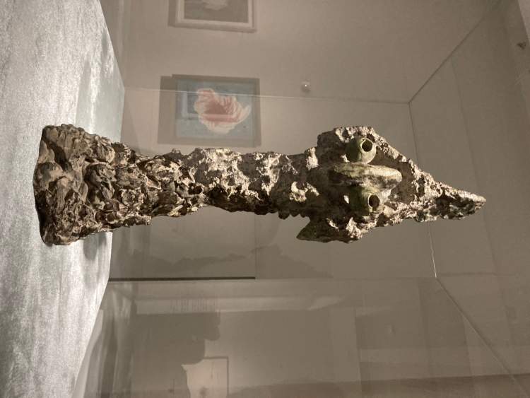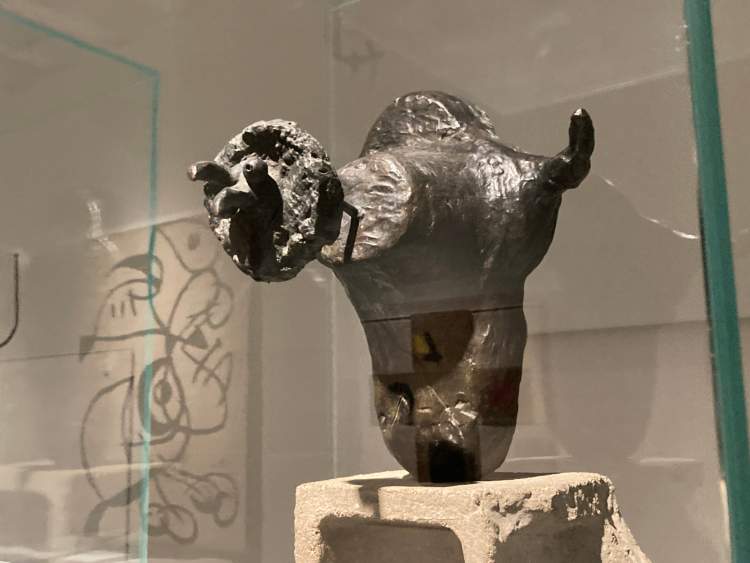 第三部分“物体”,则聚焦于雕塑、陶瓷和织物。当一件日常物品被剔除其寻常语境并被带入艺术领域时,它就丧失了实际功能,通过将它与其他元素并置,艺术家就赋予其崭新的意义。米罗曾收集、存放了各种物品,将这些物品进行重新组装,为了长期保存,他还将其铸造为青铜。米罗用组合物体的方式带来了一种全新的个性和形式,超越了物体原有的功能。米罗曾说:“一根线就能释放一个世界。”