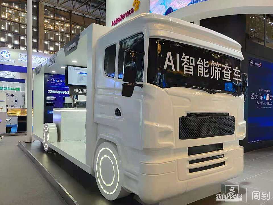 展台一侧,阿斯利康还展出了一辆“AI智能筛查车”模型,车上展示了CT-慢阻肺AI筛查、CT-肺癌AI筛查和彩超-乳腺癌/颈动脉斑块AI筛查三大应用场景。