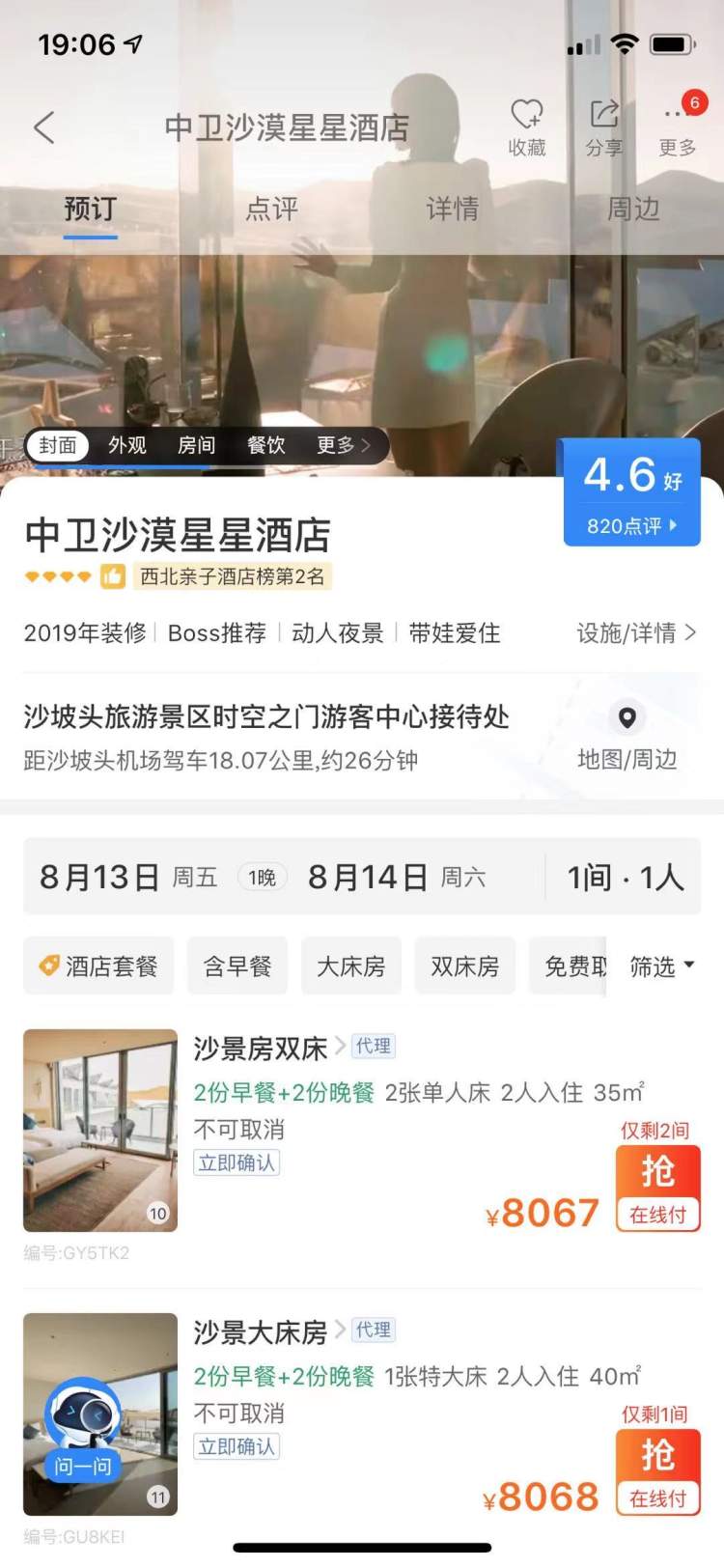 周到君通过旅游网站查询西部一些网红热门酒店的预订情况,结果也令人咋舌:在茫崖戈壁中的青海冷湖火星营地,一个一间的胶囊房,暑期国庆热门时段几乎售罄,价格也涨到了一千多元;青海水上雅丹的房车营地,暑期全部售罄,价格也升至千元;宁夏中卫火爆的黄河宿集,根本订不到;网红沙漠星星酒店,7、8月所剩房源已经寥寥无几,且价格已经飙升到超过8000元!