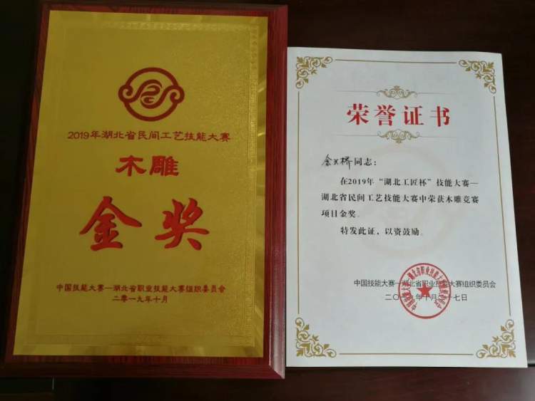 余兴桥的木雕技艺与创作才能,也得到了外界的认可。在2016年第十一届中国(东阳)木雕竹编工艺美术博览会上,其木雕作品《回娘家》获得金奖;2019年,他又在湖北省民间工艺技能大赛中获木雕竞赛项目金奖。