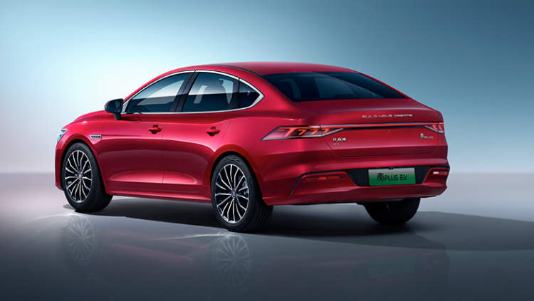 新车延续汉EV的前脸风格,运用封闭式格栅配合狭长的前大灯组,营造出干练时尚的氛围,车头的银色贯穿装饰条,配合大灯上方翘起的龙须,烘托出飞扬的动感造型。秦PLUS EV在外观设计上融入了大量的中国元素,箭羽龙睛LED前大灯、游龙跃动腰线搭配龙腾溜背造型使得整车线条饱满灵动。