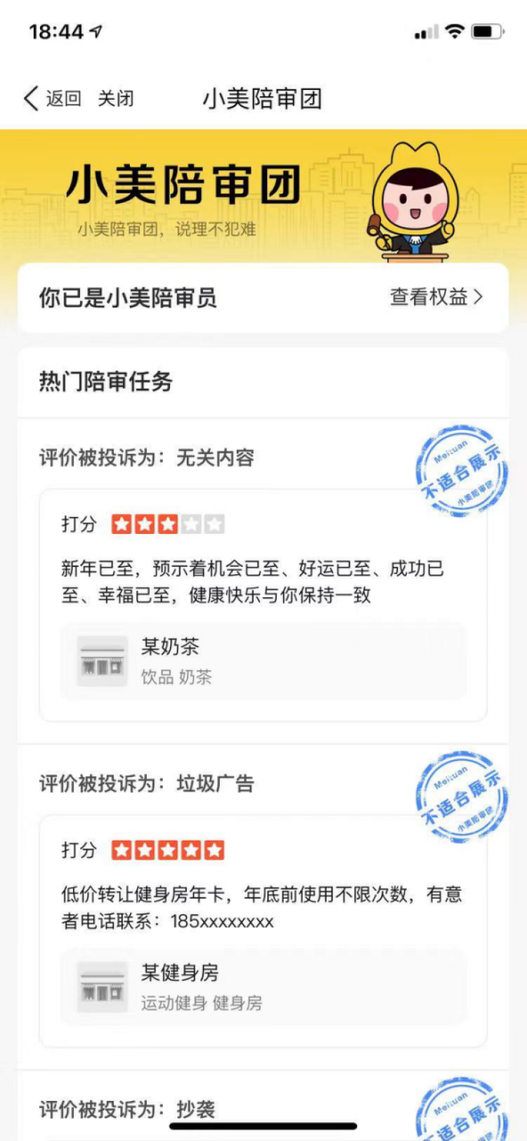 据悉,美团公众评审体系,依托美团App、大众点评App、美团外卖App等用户平台,搭建在线争议解决机制,邀请广大用户和相关领域专家,针对评价及交易等争议纠纷进行集体投票判定,确保争议纠纷得到公正公平和及时合理的解决。