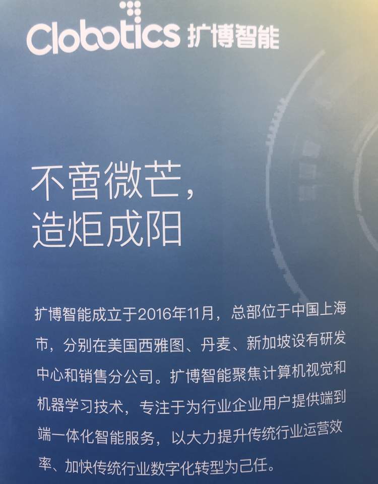 这家企业,是上海一家叫扩博智能的人工智能公司,2016年11月在上海成立,在美国西雅图、丹麦、新加坡都设有研发中心和销售中心,聚焦在计算机视觉和机器学习技术。这家公司员工130多人,研发团队硕士及以上占比70%,核心团队来自微软、谷歌、亚马逊、英特尔、华为等。