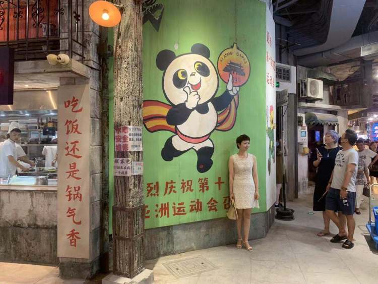 这边厢墙上写着“热烈庆祝第十一届亚洲运动会召开”——