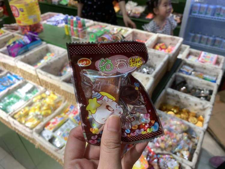 “你看这个钻石糖我们那时候都叫他’戒指糖’,你没吃过吧?爸爸小时候经常吃的”,这是在怀旧商店里,“80后”的陈先生在给儿子一一“安利”童年零食。