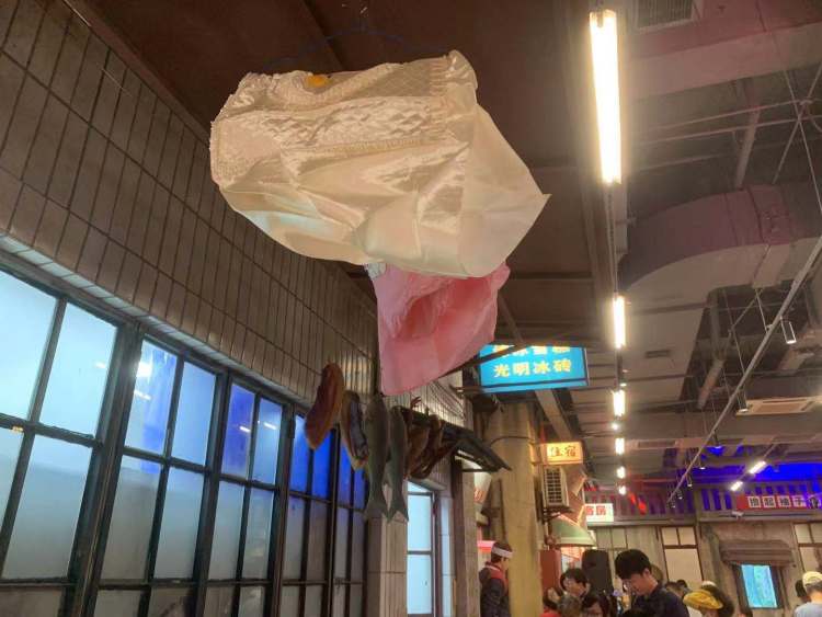 一抬头,咦,这是什么?好像,是妈妈们刚刚洗好、正在晾晒的电视机和电风扇罩子?