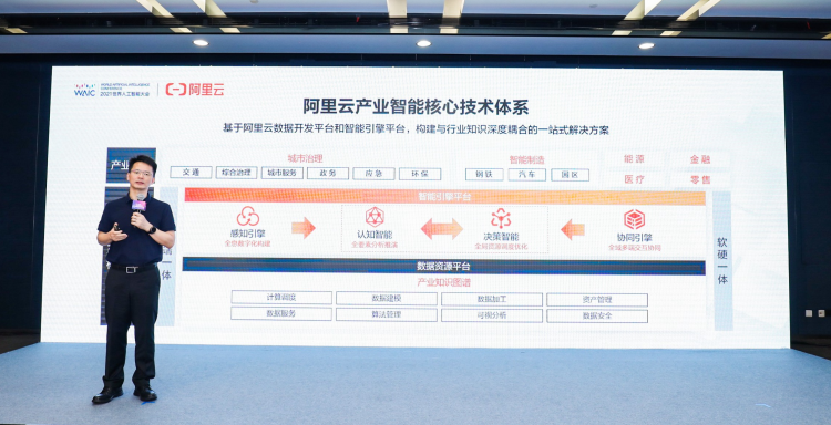7月10日2021世界人工智能大会期间,阿里云智能产品解决方案总经理曾震宇首次公布了产业智能的核心技术体系,基于数据开发和智能引擎两大平台, 构建与行业知识深度耦合的一站式解决方案。