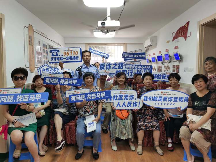 就在7月初,蓝马甲志愿者和陆家嘴梅园新村派出所社区民警,共同给老年人进行了一场“反网络电信诈骗”宣传,结合老年人不会用手机,不敢用手机的特点,进行教学。