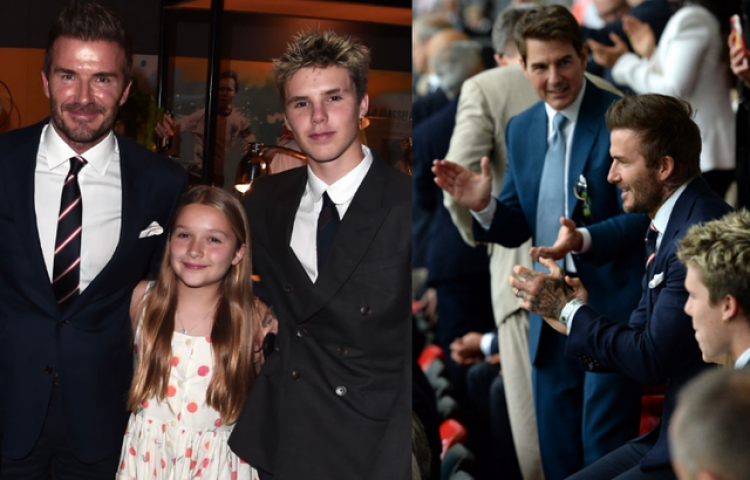 英格兰传奇球星贝克汉姆携女儿小七现身看台,好莱坞男星汤姆-克鲁斯、葡萄牙巨星菲戈都与小贝同框出现。