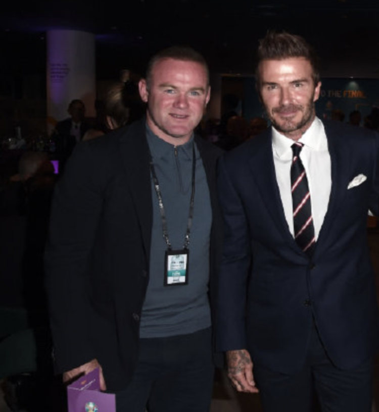 鲁尼也来到了现场,他在包厢与贝克汉姆合影。