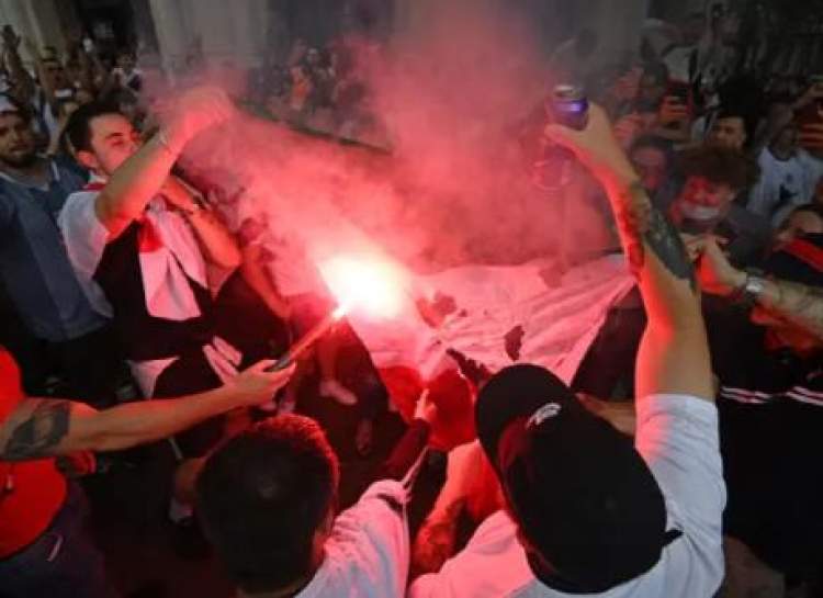 在温布利球场外,多名意大利球迷被大批英格兰球迷围攻并群殴,场面惨烈。