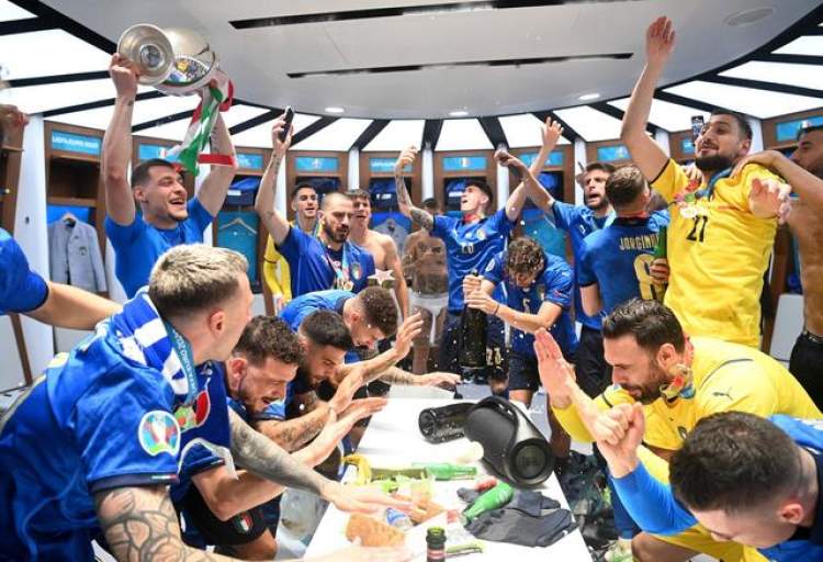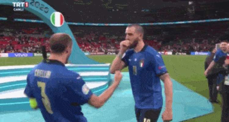 欧洲杯决赛,意大利点球大战击败英格兰夺得欧洲杯冠军后,意大利队员在温布利大球场疯狂宣泄,博努奇对着镜头怒吼“足球回罗马了”,还大喊英格兰球迷应该去吃意大利面,言语间充满了喜悦背后隐藏多时的愤怒。
