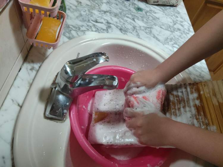 搓衣板,对于建平香梅中学初一(4)班的龚嘉宜而言,是陌生的。用搓衣板洗衣服,也是他之前未干过的家务活。