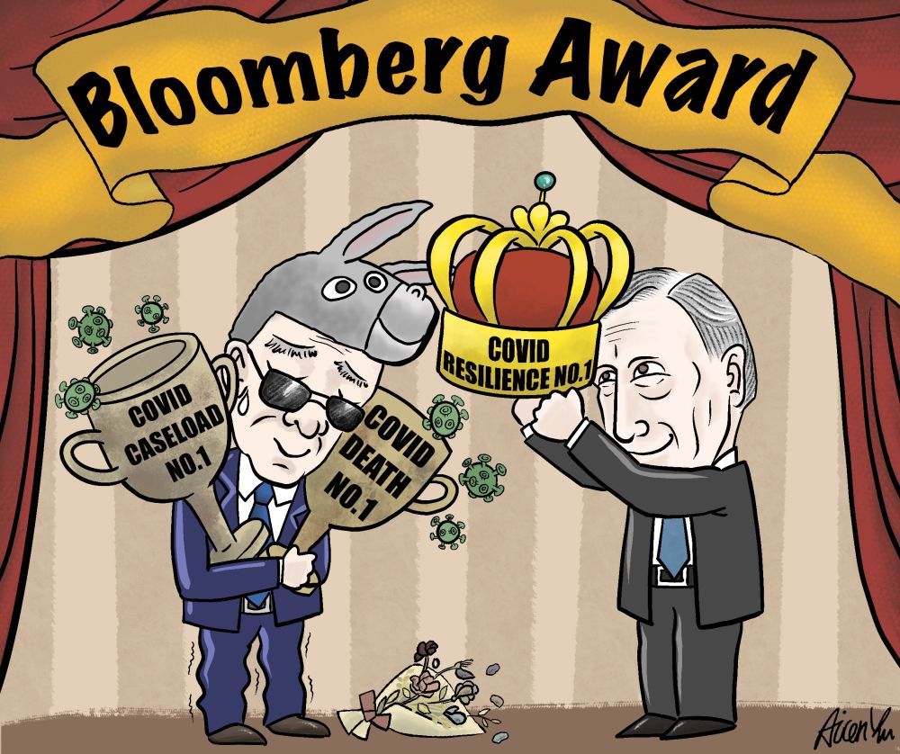 在彭博社这期所谓“全球抗疫排名”上,美国赫然名列榜首。彭博社这块“魔镜”给美国来了个换头级别的“美颜”!