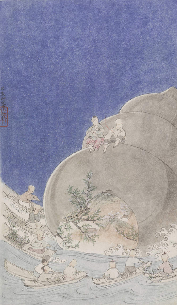 徐旭峰近年来在海上画坛十分活跃,他创造的“小人国”标识,贯穿于他的各个水墨系列创作中。此次展览,徐旭峰带领“小人们”走进了楚文化那个侑神的世界里,借以实现他多年来对于楚文化和屈原《九歌》的无限怀想。