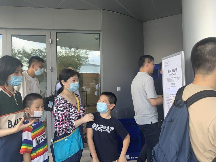 上午9点50分,馆方在羲和太阳塔前和每一位排队观众说明情况。观众们也都表示理解,一同帮助他达成心愿。