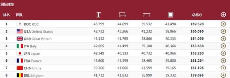 今晚刚刚结束的东京奥运会体操女团决赛中,中国队以161.196分位列第7,这也是2004年雅典奥运会以来中国体操女团的最差成绩。零失误的俄罗斯队以169.528分压过头号主力拜尔斯伤退的美国队,夺得冠军。俄罗斯姑娘上一次在奥运会夺得女团冠军,还是在1992年,国家还叫“独联体”。