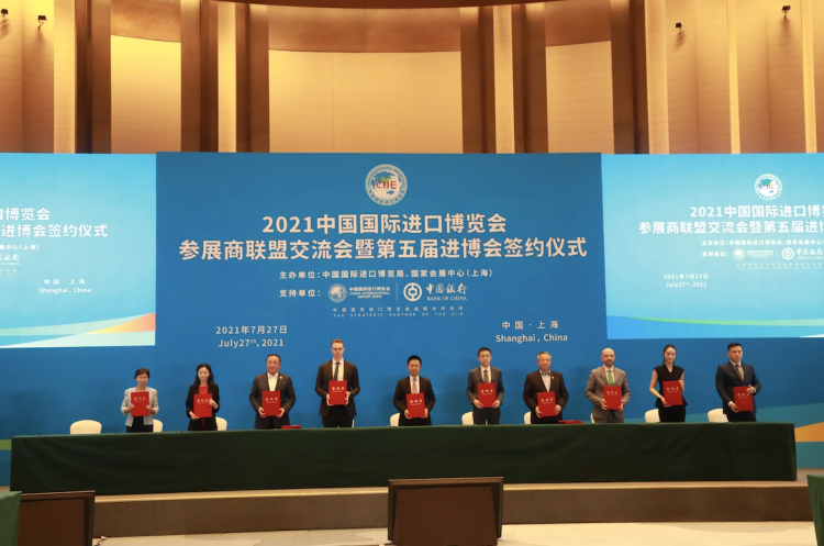 7月27日,在第四届进博会倒计时100天之际,2021进博会参展商联盟交流会暨2022进博会参展签约仪式在国家会展中心(上海)举办。