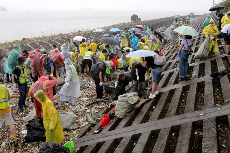 中午,雨势一度非常大,公园紧急决定,终止上午的活动,并取消下午的活动。但是,雨停之后,依然有很多市民前来净滩。