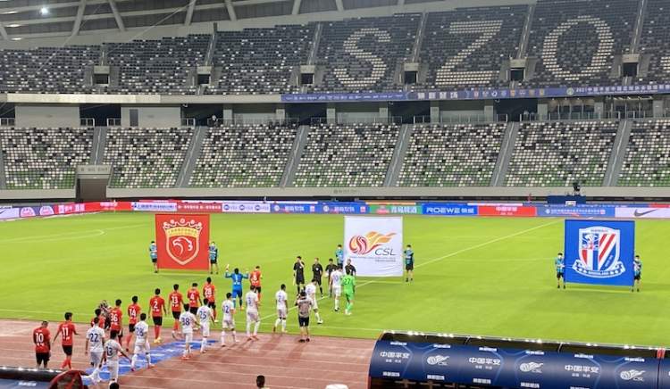 中超历史上第一场没有现场球迷加油助威的上海德比今晚在苏州奥体中心体育场进行。场上球员和教练的喊声清晰可闻,零星的加油声来自两家俱乐部的包厢。这场缺少激情的比赛,精彩程度也是实在一般。