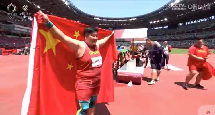 今天,老将终于如愿以偿,以绝对优势为自己集满奥运三色奖牌,也见证了东京新国立竞技场升国旗、奏国歌。夺冠后,巩立姣面对镜头竖起大拇指,激动地喊出:“CHINA,牛!”