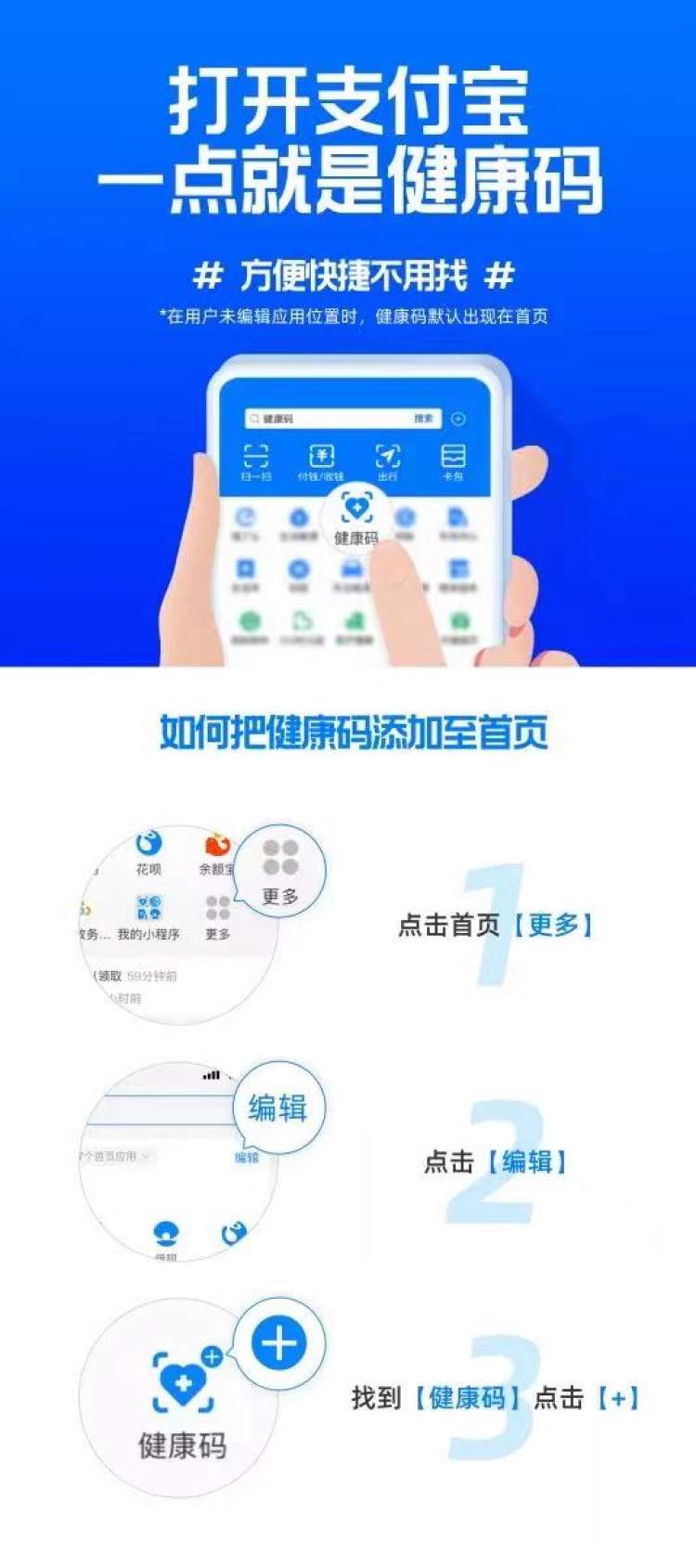 为方便快速找到健康码,建议可将健康码添加到支付宝首页,可快速打开核验。