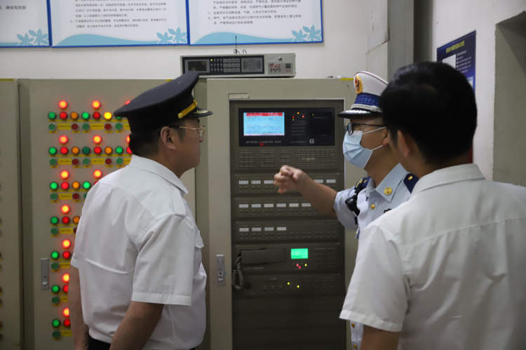 同样在奉贤区望园路上的一幢高层商务楼,消防检查人员来到消防监控室,对消防控制室值班人员是否具备四级消防管理员资质及消防控制室值班制度落实情况进行了检查。检查中发现该物业存在持证值班人员配备不足,消防值班人员火警处置程序不熟练,未建立全要素演练预案等问题,检查人员现场对该物业服务企业进行约谈,下一步将依法进行给予行政处罚。