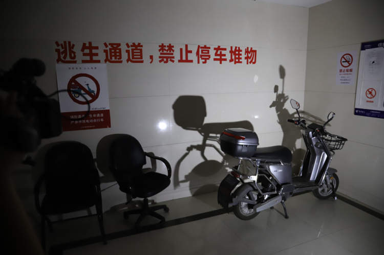 电动自行车火灾燃烧速度快,火焰猛,有毒烟气大,难以扑救,而且很容易引燃周边可燃物。”
