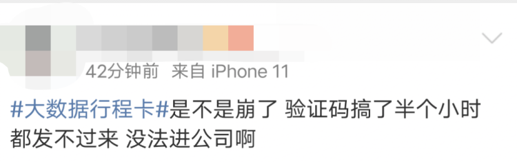 今天早上,不少市民发现,扫码查询 “通信行程卡”时收不到验证码,无法查询行程↓↓↓