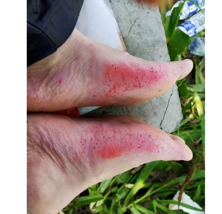 在郑州救援的几天,救援队员们每天会有大量时间泡在水中。前面几天在郑州中牟县,建材厂里化工品泄露,污染了水体;后几天在新乡,村庄旁边有个养殖场,死猪死羊泡在水中,红斑、湿疹,救援队员们的皮肤出了不同的程度。