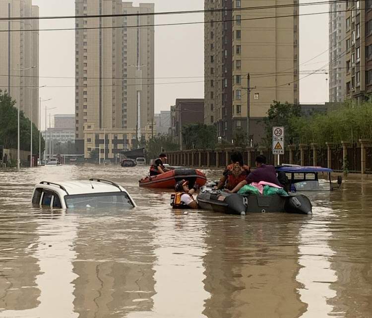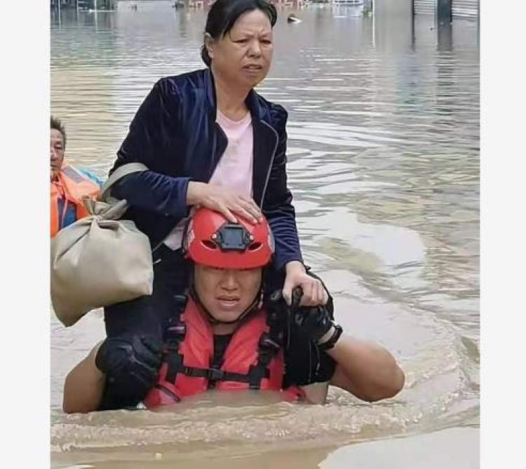 “当时我们开着救援艇转移群众,一船大概4个人。刚出小区的时候,船下面的马达卷到了水底的衣服,船在水面上不停打转,那里水流还比较急。”