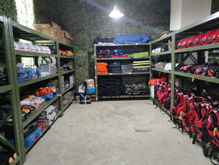 据悉,三栖救援队共有2个装备库,另一个更大、装备更多,而这个装备库里的装备大概要100万左右。