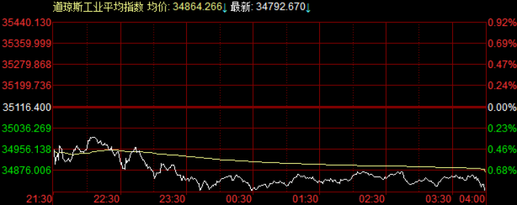 来看美股隔夜的具体数据,至收盘,道琼斯工业平均指数下跌323.73点,跌幅0.92%,收报34793点;纳斯达克综合指数上涨19.24点,涨幅0.13%,收报14781点;标普500指数下跌20.49点,跌幅0.46%,收报4403点。