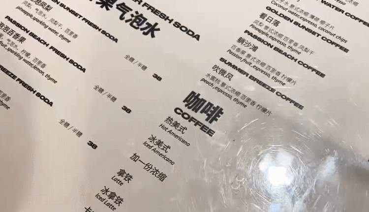 店内冰淇淋有12种,分为三个种类——微醺冰淇淋、阿芙加朵、夏日限定。其他饮品还有特调咖啡和各种口味的气泡水。