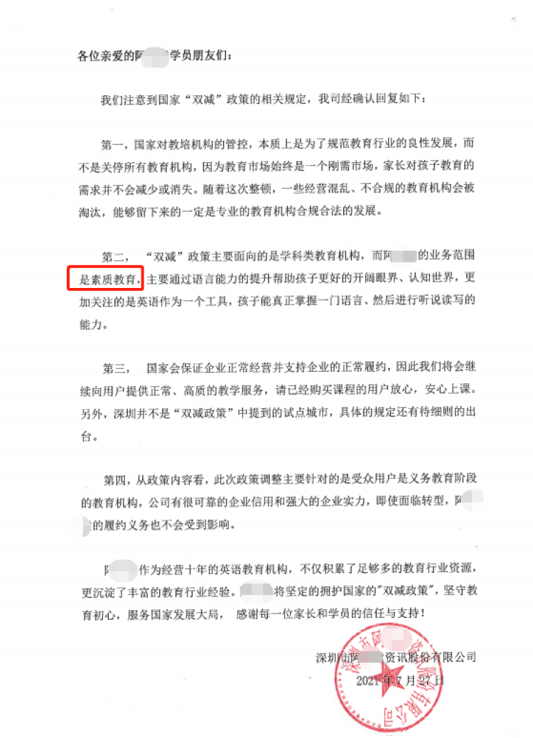 动向2:机构发函保证授课、说明裁员、请求不要挤兑