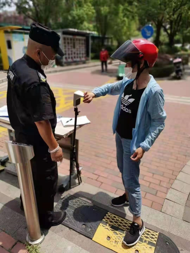 “请出示随申码、行程码,测量体温。”在谐趣鑫庭小区门口,每一位需要进入小区的人员都需要向保安出示“两码”,并在旁边的智能测温仪处自行测温,测温后,伴随“滴”的一声,则意味着该人员体温通过,可以进小区。