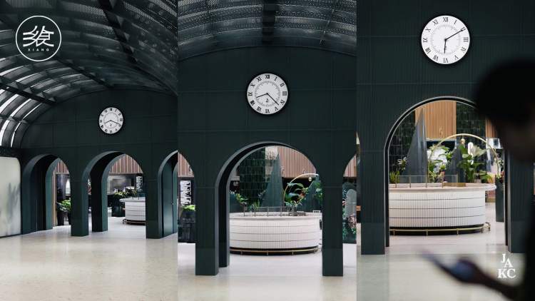 连接扶梯下来的走廊,入口如同经典英伦火车站的洞门,上方正中的时钟嘀嗒响动,欢迎着每一位到访的客人在这里开启愉悦时光。有些人会是这里匆忙的过客,有些人将是这里找到挚友,时间似乎会告诉答案。