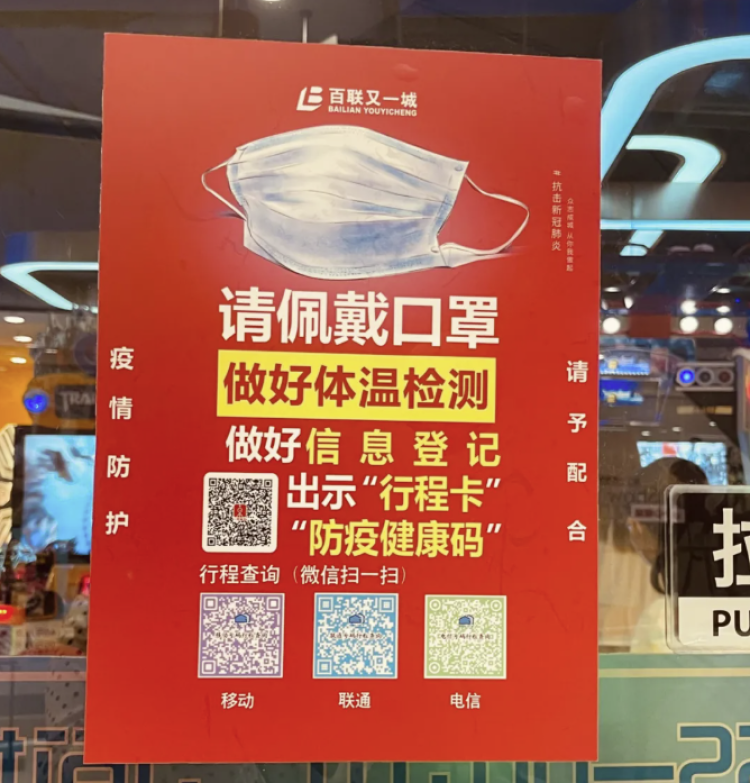 BFC外滩金融中心则采用了一个更贴心的方式——给核验后的消费者“贴标签”。8月3日记者从商场南区广场一楼进入时出示了随身码后,工作人员便撕下一张小贴纸,并建议记者贴在方便出示的地方,例如手机壳就是个不错的选择。