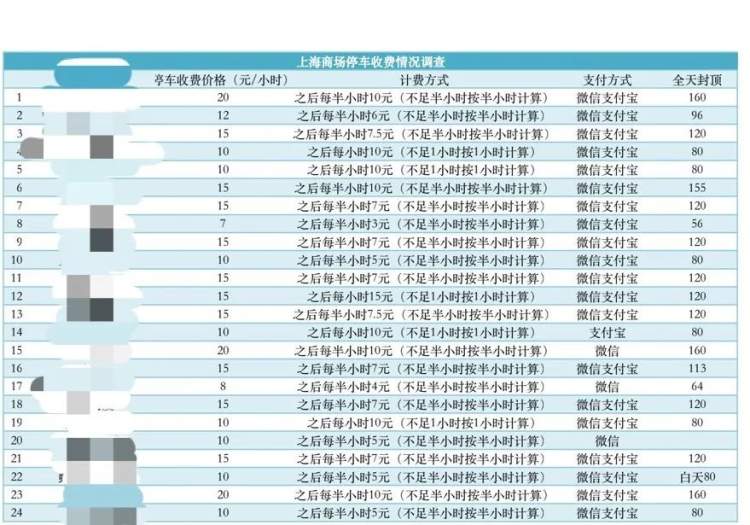 上海市消保委在调查中发现,目前上海几乎所有商场的计费方式都是以“不足半小时按半小时/不足一小时按一小时”来收取,并没有按照分钟来收取停车费的。而几乎所有停车场收费的方式都是通过支付宝或者微信,总之都是使用二维码电子支付。