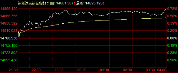 来看美股隔夜的具体数据,至收盘,道琼斯工业平均指数上涨271.58点,涨幅0.78%,收报35064点;纳斯达克综合指数上涨114.59点,涨幅0.78%,收报14895点;标普500指数上涨26.44点,涨幅0.60%,收报4429点。