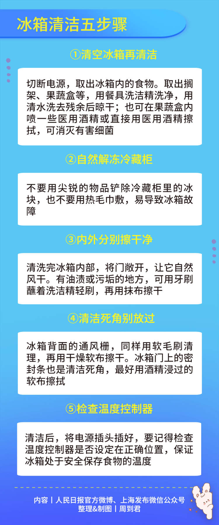 跟着下图的步骤操作,给冰箱“洗个澡”吧↓