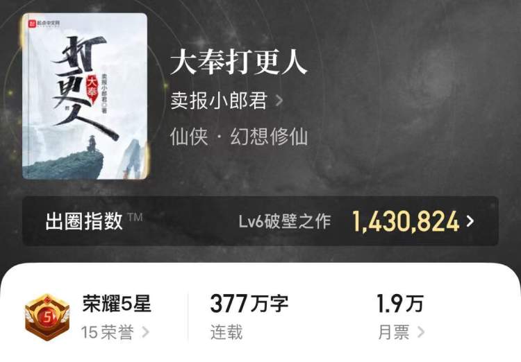 自连载以来,《大奉打更人》所传递的侠义精神深受万千读者喜爱,互动量超百万,仅起点读书就拥有超过800万粉丝。